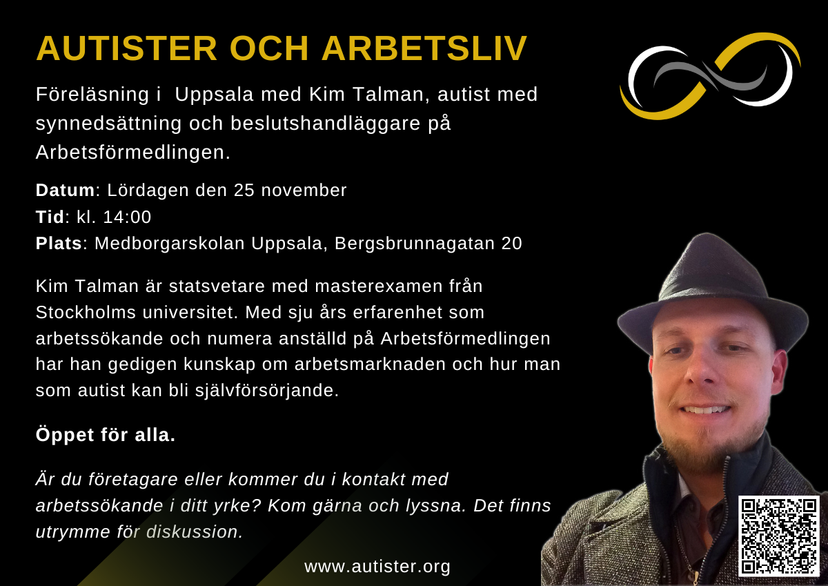 Autister informerar: ”Autister och arbetsliv” 25/11 i Uppsala med Kim Talman av admin | 19 november 2023 | Föreläsningar, Uppsala Föreläsning i Uppsala med Kim Talman ”Autister och arbetsliv” lördagen den 25 november kl. 14:00. Det är öppet för alla. Anmäl dig till föreläsningen ”Autister och arbetsliv” i Uppsala 25/11 Förnamn Efternamn E-post Meddelande Nytt fält Nytt fält Jag vill delta på föreläsningen "Autister och arbetsliv" i Uppsala lördagen den 25 november kl. 14:00. 13 + 15 = Skicka