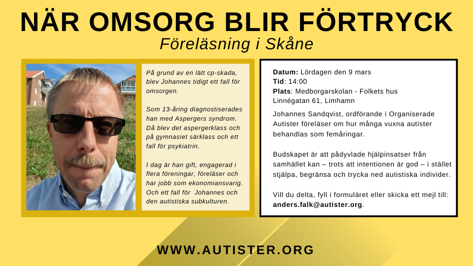 Det går också att anmäla sig på Medborgarskolans hemsida: https://www.medborgarskolan.se/arrangemang-sok/nar-omsorg-blir-till-fortryck-forelasning-med-organiserade-autister-1418182/